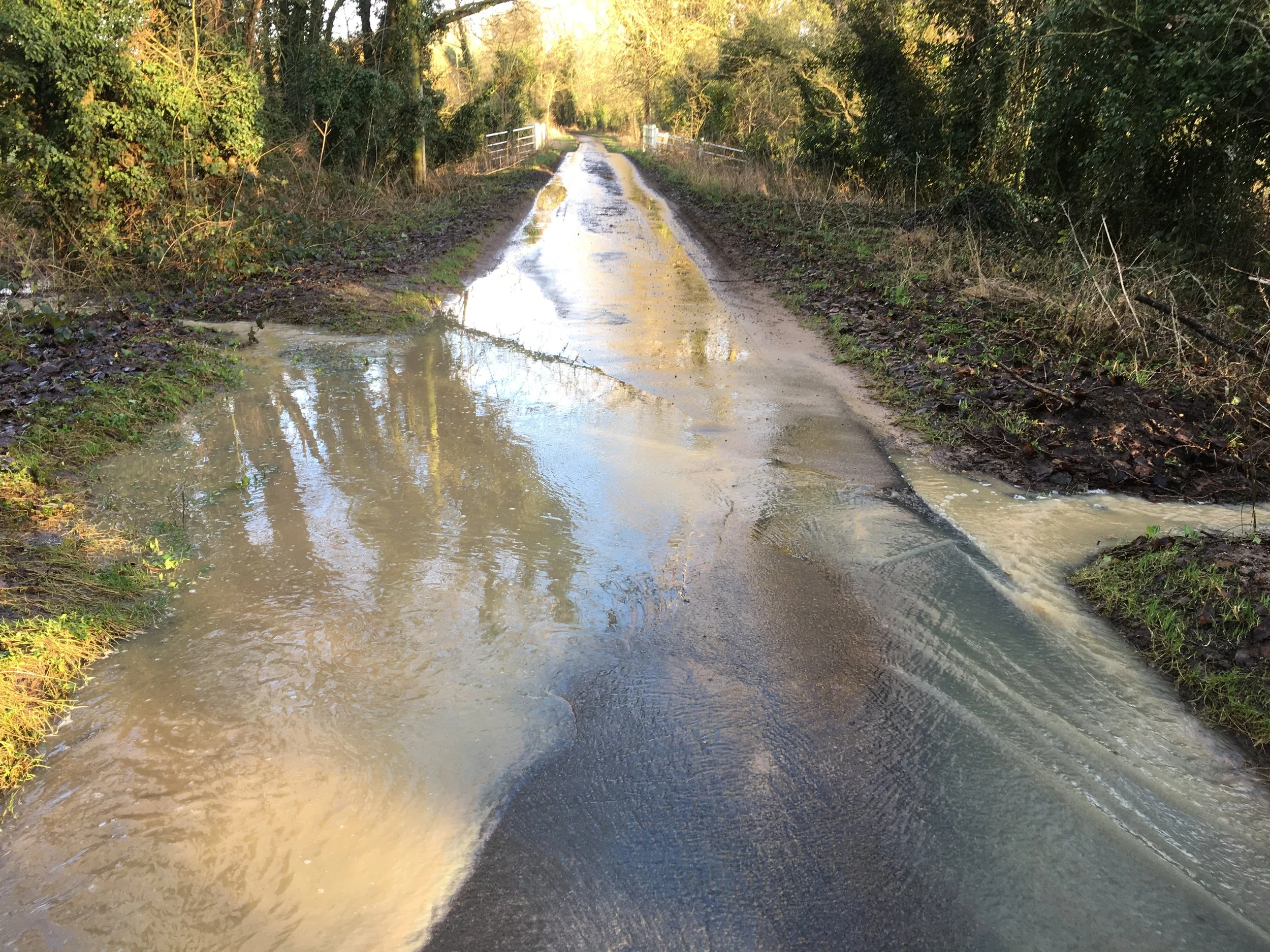 Photos by Tim Ellis (left) of a section of the river just upstream of a disused mill. Inches of nearly static water with feet of sediment backed up. Just waiting for a flood to unleash it all downstream… for a modified chalk river like the Wensum to operate properly, this should be de-silted regularly. And (right) sediment heading for the river Wensum.