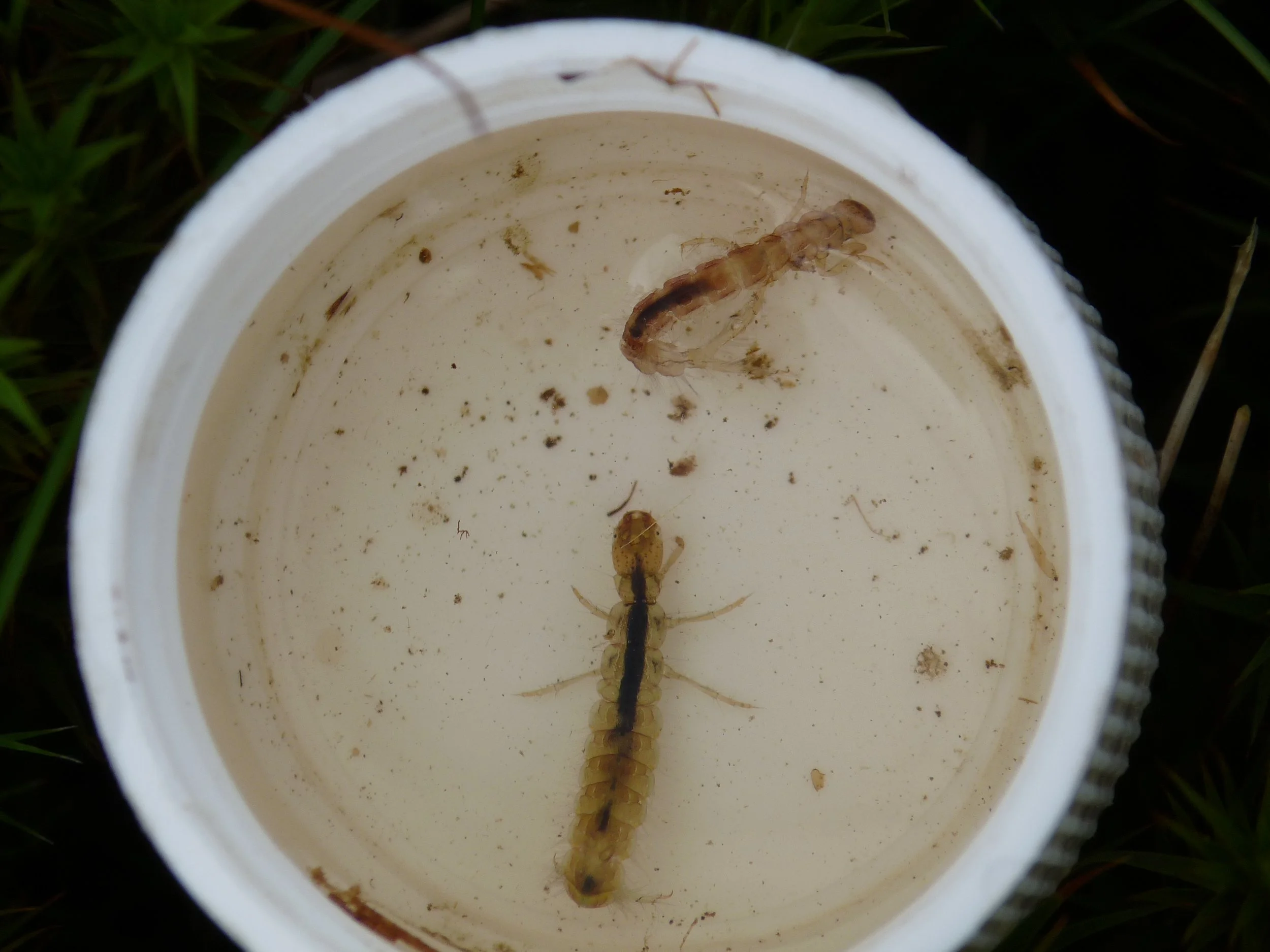 Caseless caddisflies may be found inside a web or purse-shaped cases made from silk, just before pupating. They can be confused with alderflies, water beetle larvae and non-biting midge larvae.